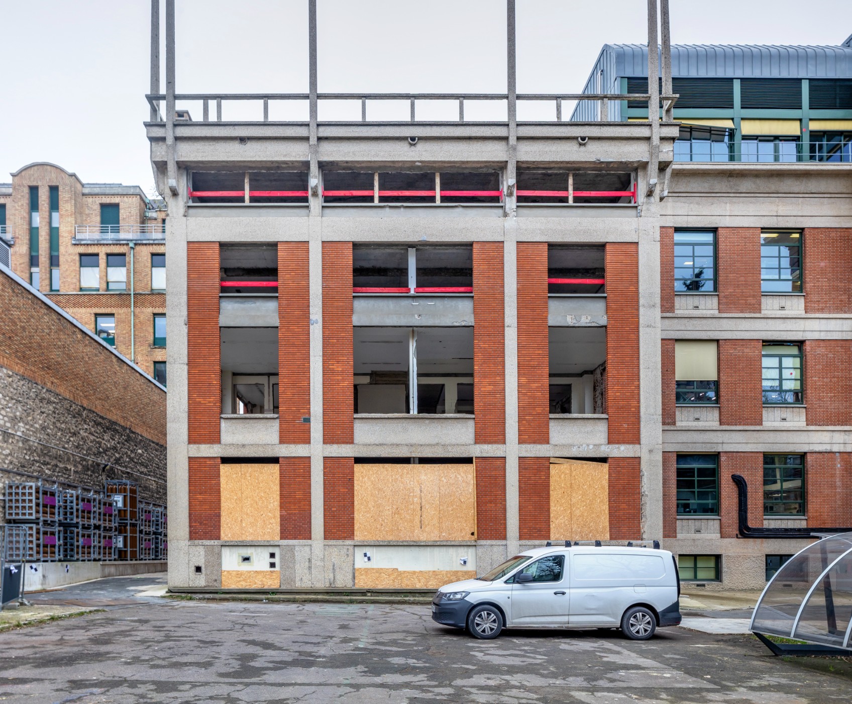 Les travaux qui vont s’engager correspondent à la phase principale du projet : ils prévoient une restructuration totale du bâtiment Grand Hall, avec une rénovation complète des espaces et le réalignement des niveaux avec ceux du bâtiment voisin, qui donneront plus de fluidité aux usages, une surélévation du bâtiment et même la création d’un deuxième niveau de sous-sol sous l’un des espaces de laboratoire.
