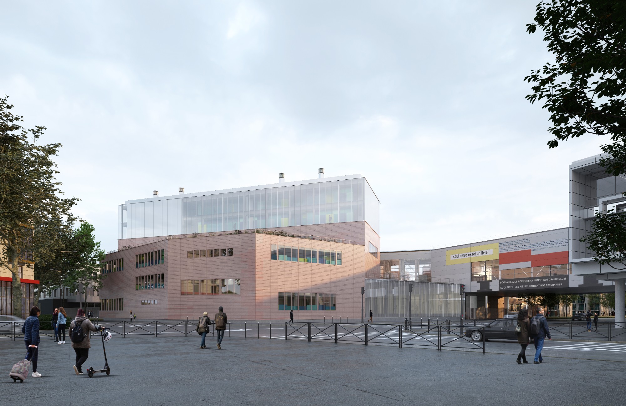 Matériaux durables : le projet intègre des matériaux à faible empreinte carbone comme des poutres et poteaux en bois (1580 m² de charpente en surface projetée au sol), des façades en terre cuite sur ossature bois (1 140 m² de surface de façade), des isolants à base de fibres végétales (1 320 m3).