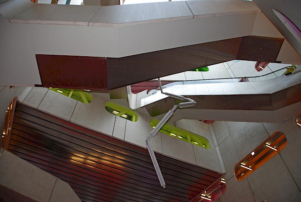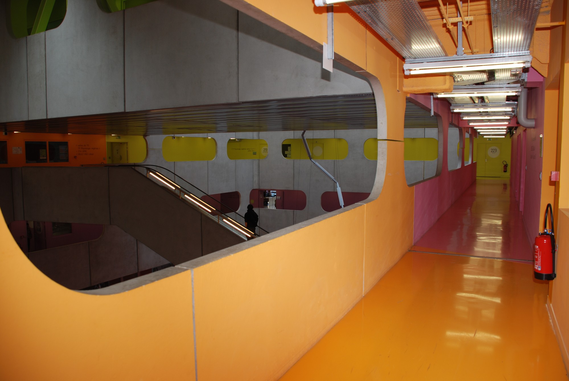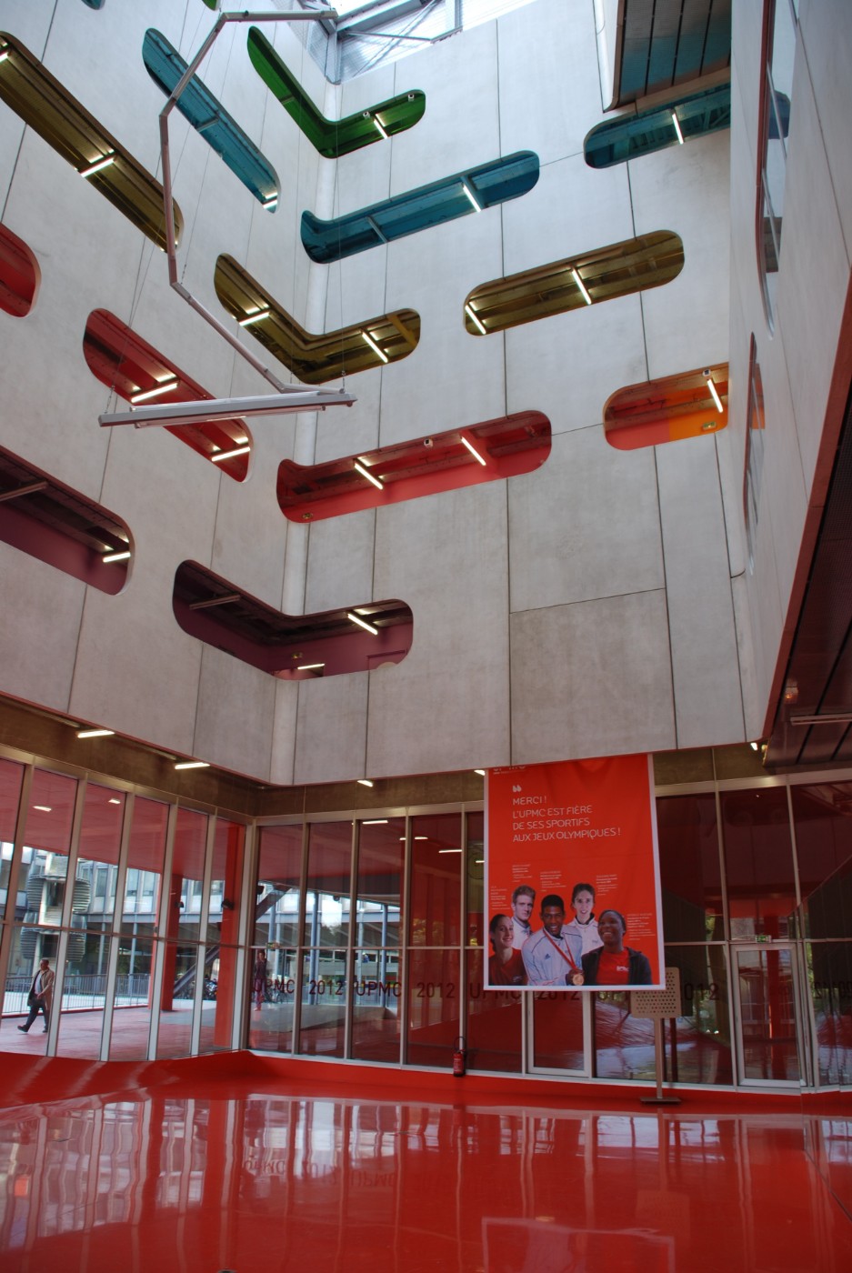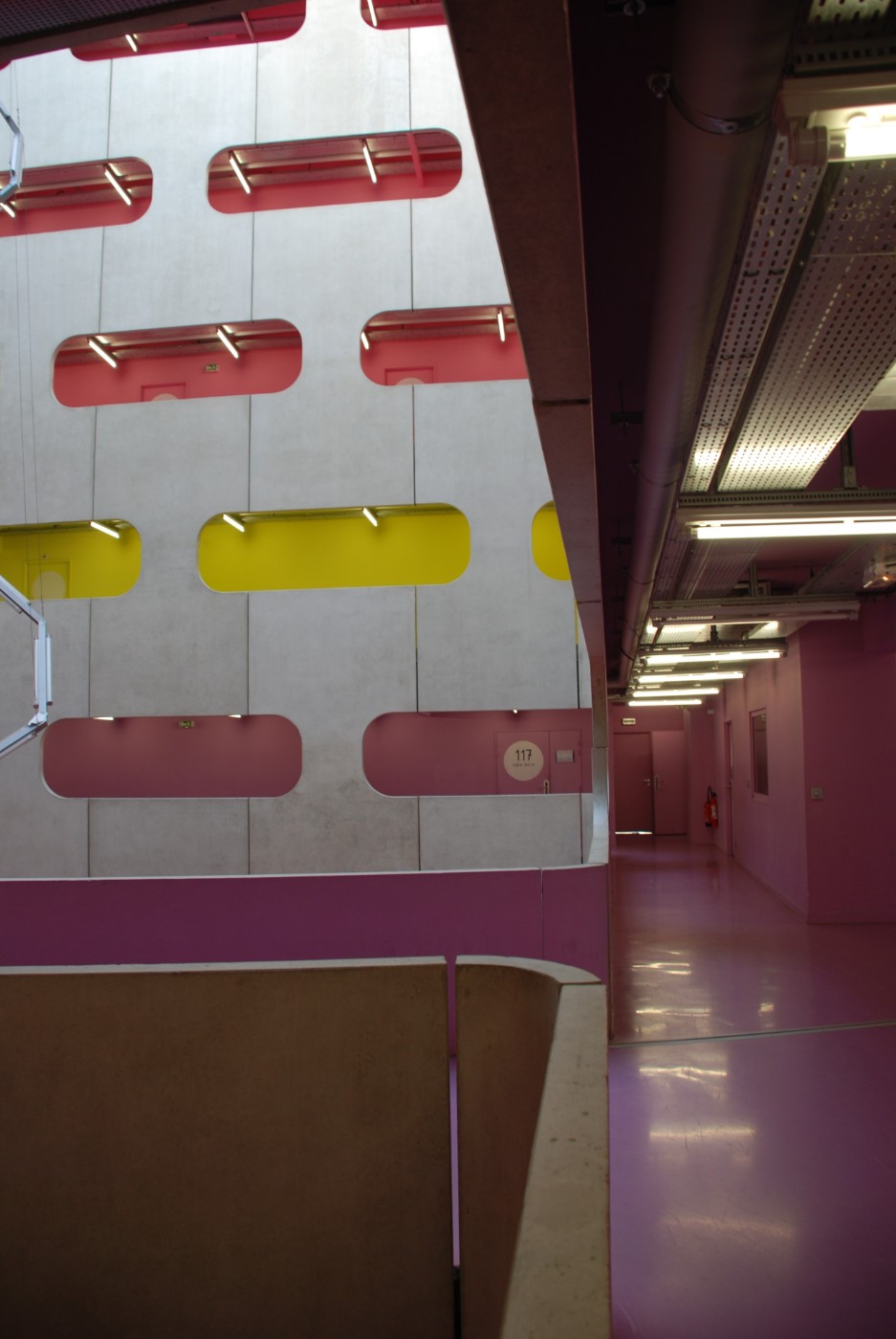 Le parti pris d'organisation de ce pôle pédagogique autour d'un grand vide central, qui constituait une véritable place verticale, propose aux utilisateurs une vision globale pour s'orienter et visualiser les différents secteurs d'enseignements. Elle est renforcée par une colorimétrie correspondant aux divers lieux d'enseignement : en un coup d'oeil, on est à même de savoir où se déroulera le prochain cours...