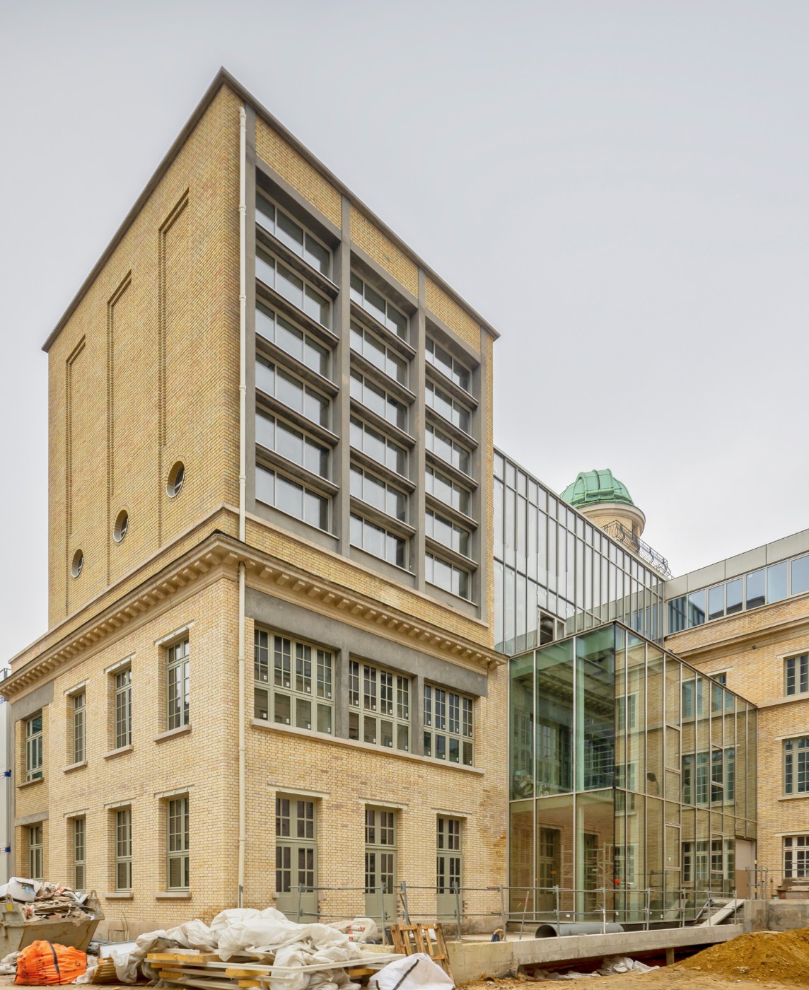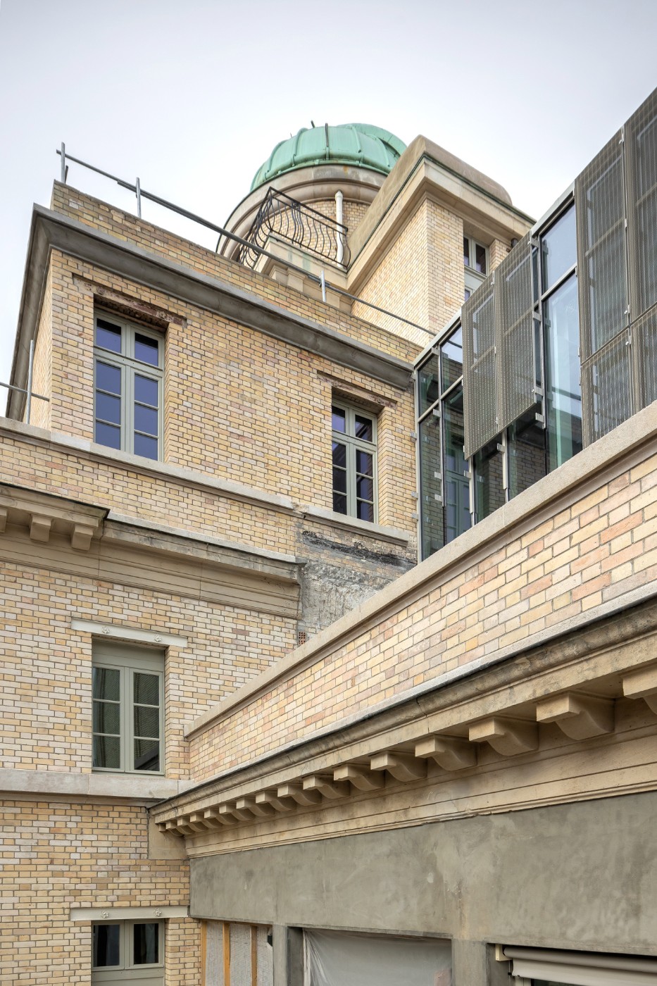 Une des particularités de ce projet réside dans son caractère historique riche d’une authentique technique de construction, le bâtiment n’avait subi que très peu de retouches et présentait de fait un décalage par rapport aux objectifs environnementaux actuels. Dans ce contexte, pour garantir aux futurs occupants du bâtiment des conditions optimales de travail en accord avec les contraintes énergétiques qui sont les nôtres aujourd’hui tout en préservant le caractère patrimonial des lieux, celui-ci a fait l’objet d’un financement complémentaire dans le cadre du plan de relance permettant un traitement adapté de son enveloppe.
