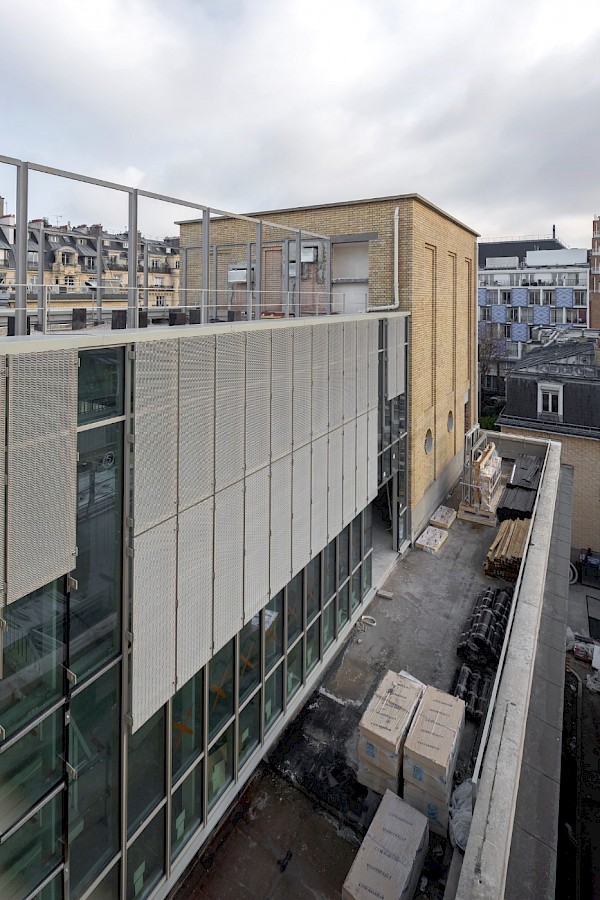 Le projet d’extension visait à réhabiliter le bâtiment Jean Perrin, situé à proximité sur le même campus Curie, au coeur de Paris, qui offre désormais 2 600 m2 supplémentaires comprenant notamment :