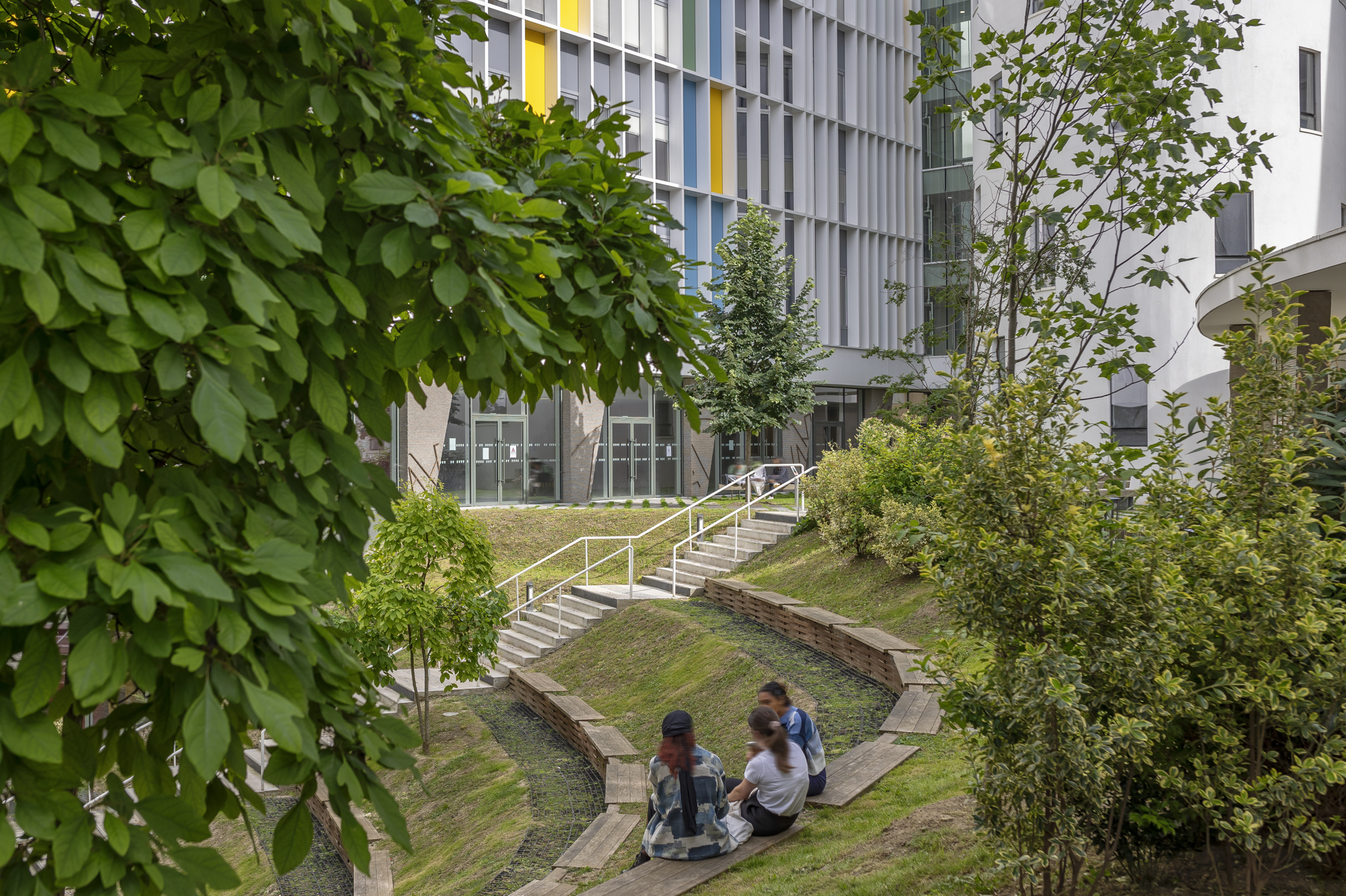 Conçu selon une véritable logique de campus, le lieu dispose de lieux de vie étudiante, d’un restaurant universitaire en partenariat avec le CROUS de Paris, de jardins et d’une ouverture sur la ville.