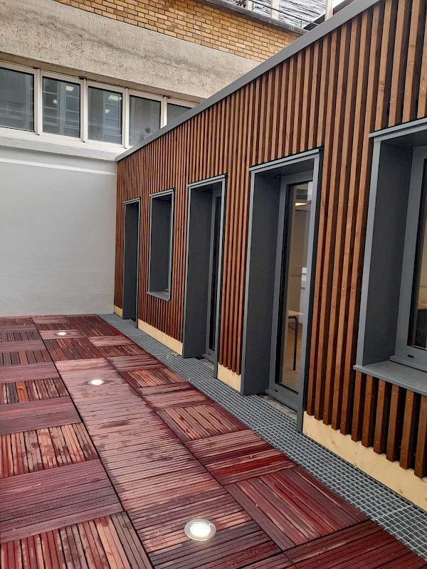 Les travaux de rénovation consistent notamment en la reprise des distributions électriques et informatiques, des huisseries intérieures, des revêtements de sols, murs et faux plafonds, le remplacement du parc éclairage en LED et l’isolation par l’intérieur. Les prestations afférentes aux travaux de restructuration prévoient la modification des cloisonnements, ouvertures et planchers, et la suppression et création de mezzanine.