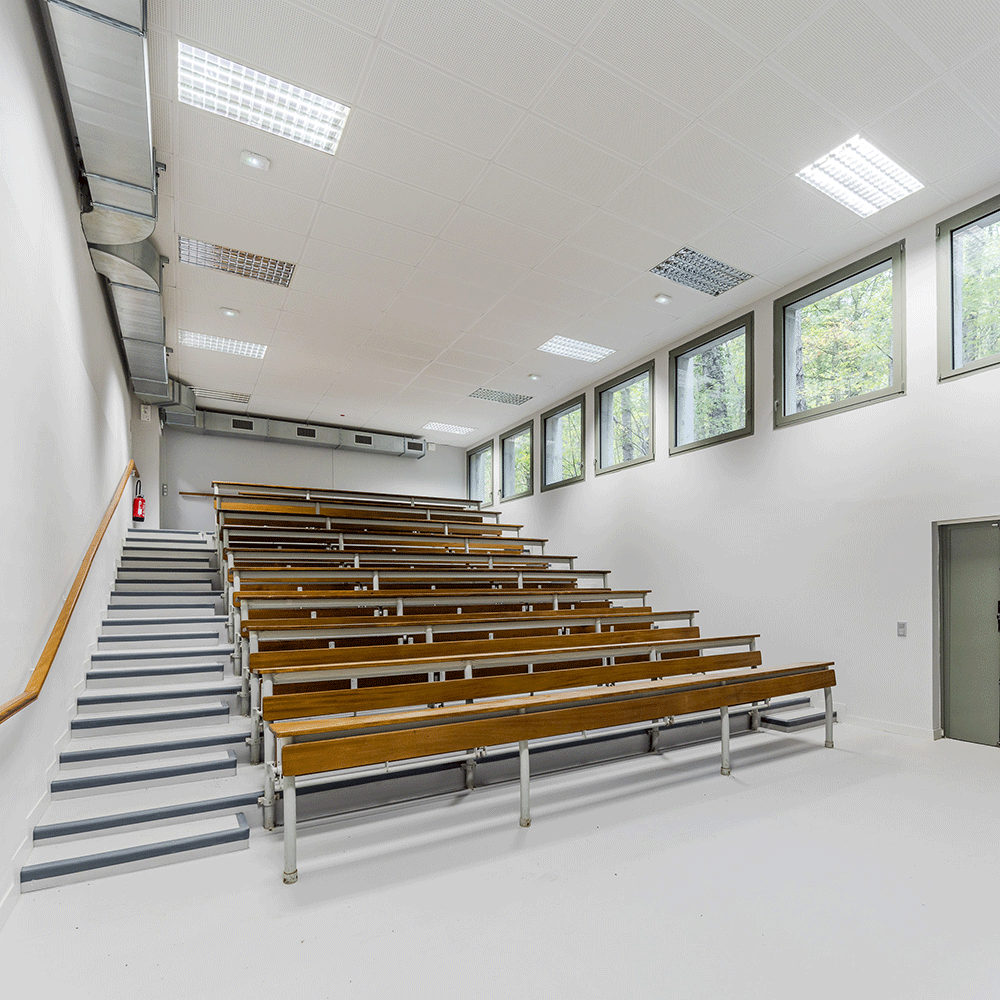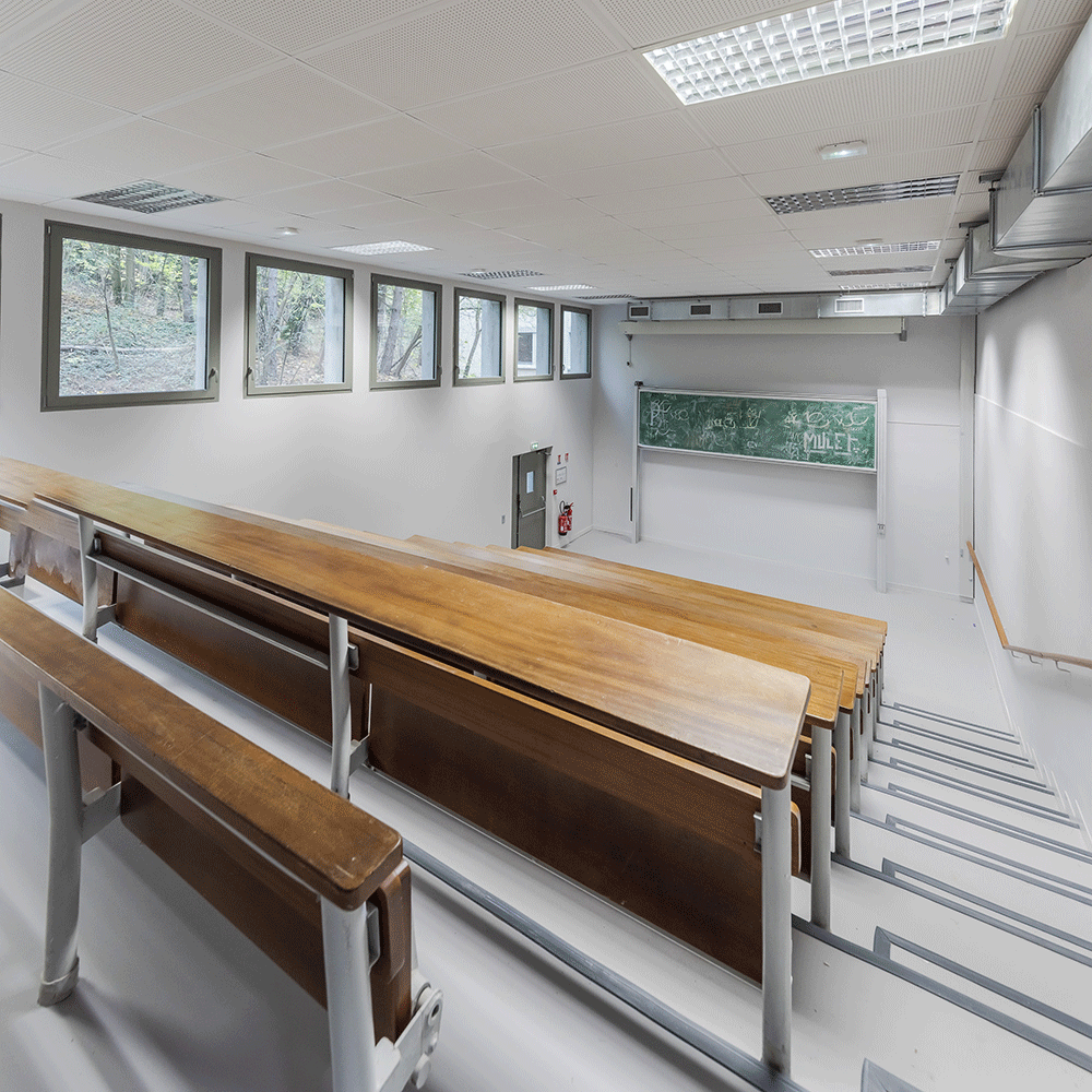 Le programme a consisté en la réhabilitation d’environ 6 000 m² de salles de TD et de bureaux en site partiellement occupé (l’amphithéâtre restant exploité). Ces locaux seront occupés dès la rentrée 2022 notamment par l’UFR de Staps et l’UFR Droit Economie Gestion.