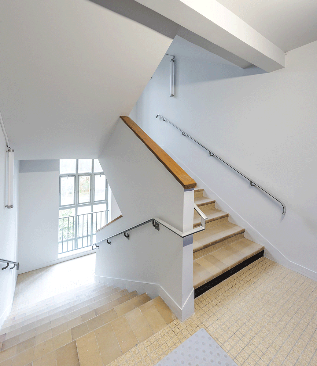 • Remise à niveau du bâtiment sur le plan technique et réglementaire (désamiantage, mise aux normes électriques, mise en accessibilité, etc.).