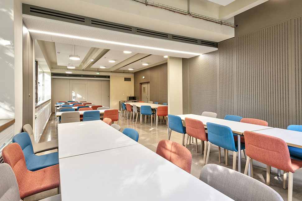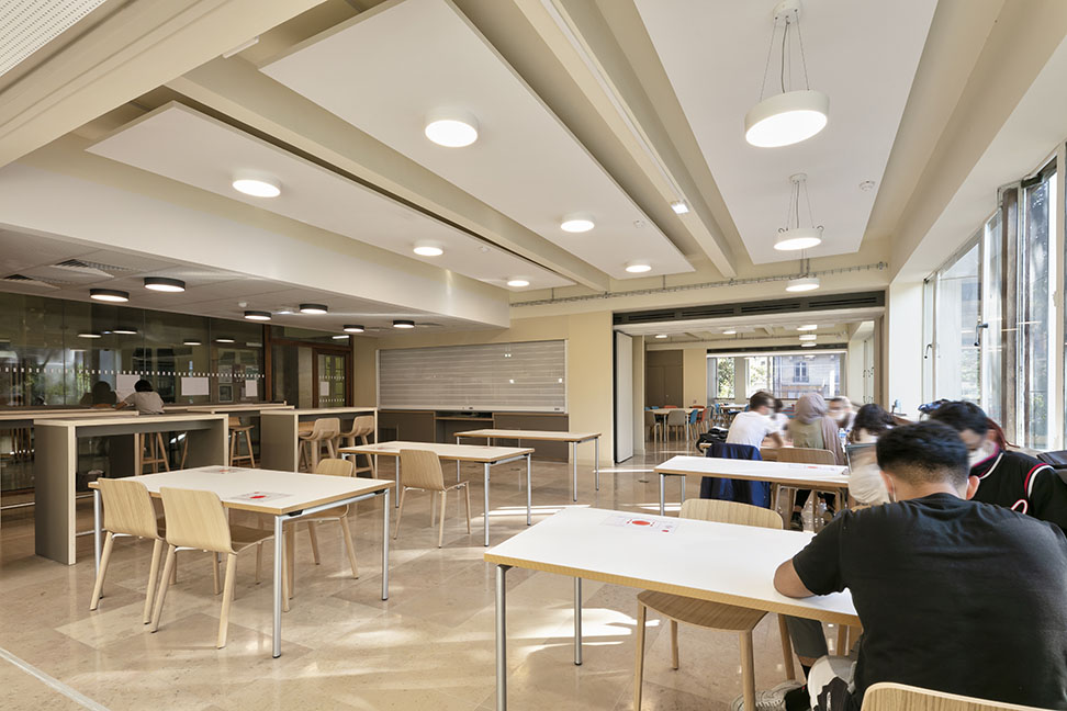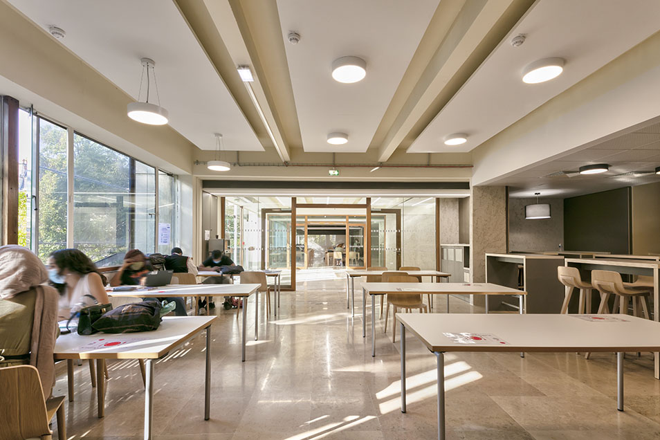 La restructuration du site de la faculté de pharmacie de Paris, financée au titre du plan Campus, a débuté avec une première tranche de travaux, réceptionnée en 2019, qui a permis la création d’un pôle de formation continue, d’un espace de restauration et d’un nouveau cœur de réseau informatique.