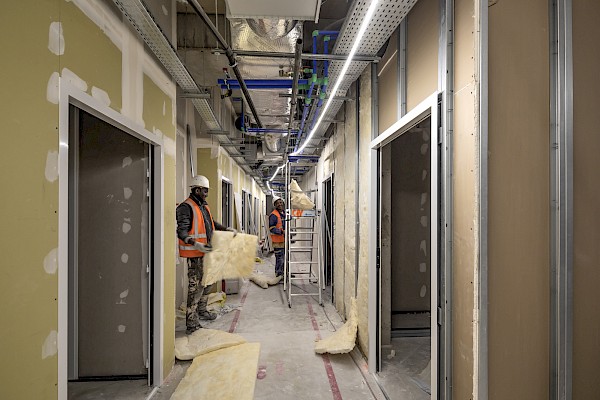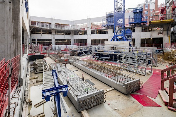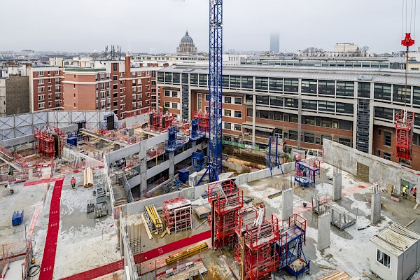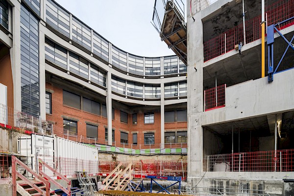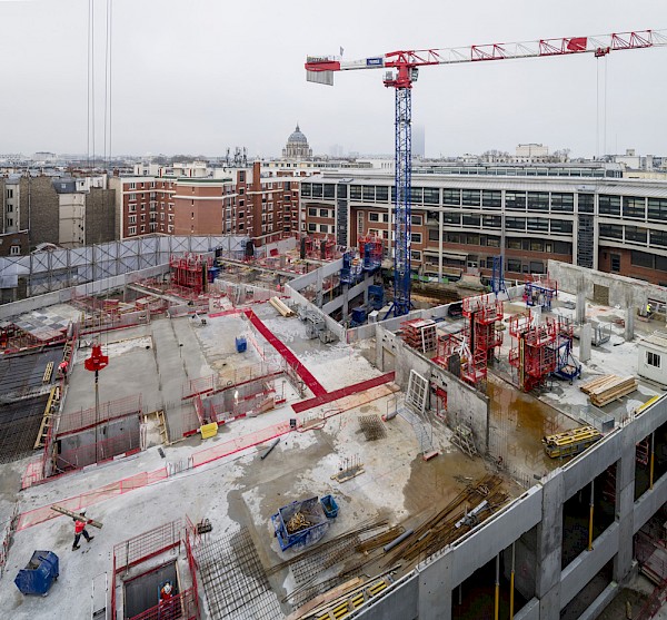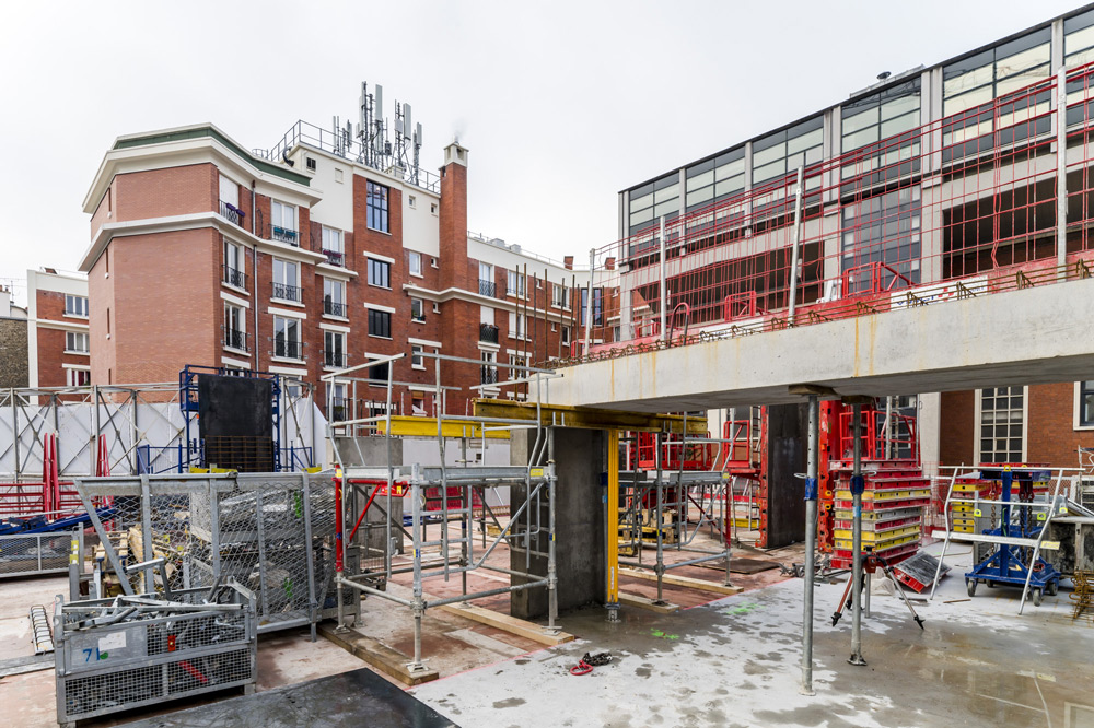 En plus de se dérouler dans un site qui reste occupé par la majeure partie des activités de l’école, le chantier doit composer avec un environnement urbain dense. Les travaux doivent prendre en compte la mitoyenneté, la circulation et la présence d’autres grandes écoles à proximité. Pour répondre à ces contraintes, l’opération se décompose en plusieurs phases de travaux.